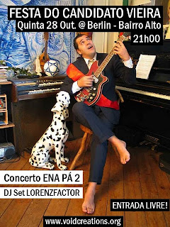 Amanhã, quinta-feira, 28 de Outubro, a Void Creations vai organizar uma Festa-Comício do Candidato Vieira no Bairro Alto, em Lisboa.